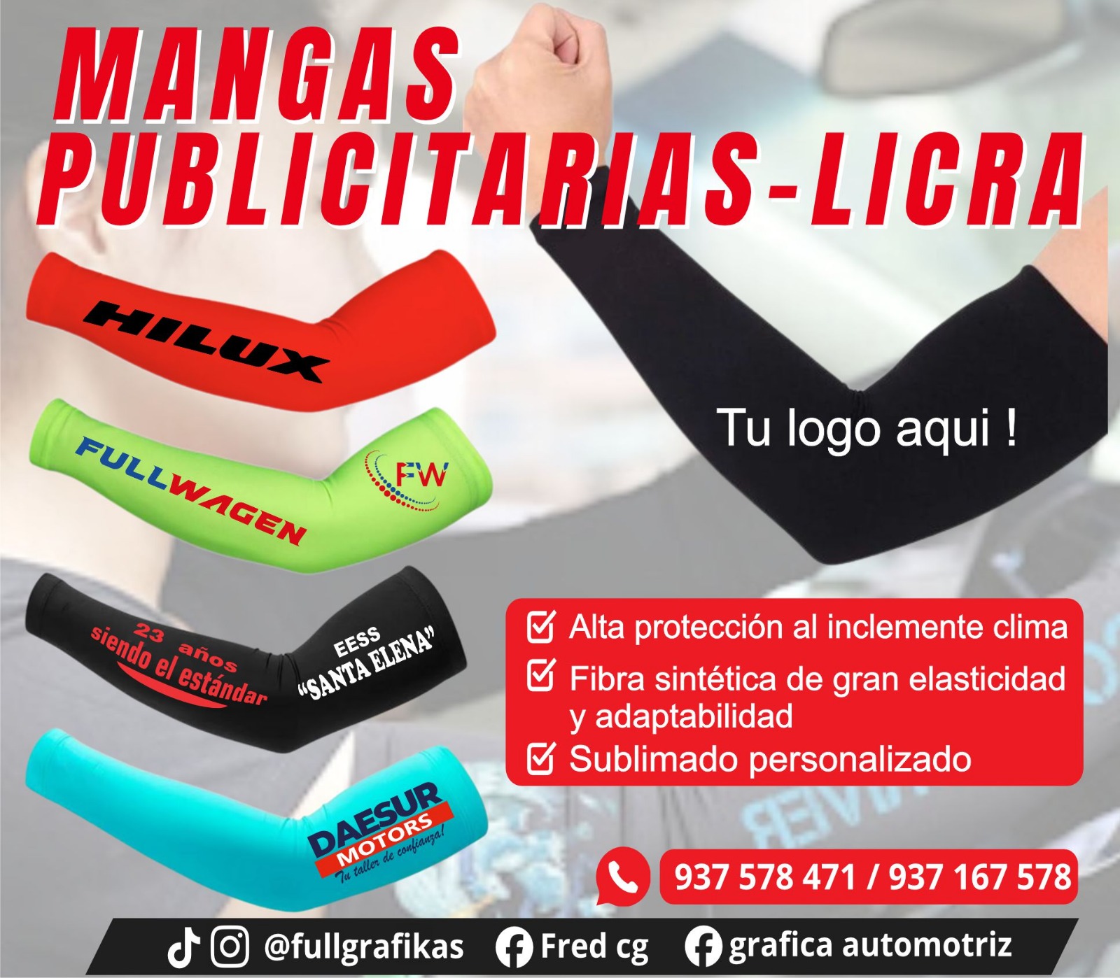 «Personaliza tus mangas publicitarias con tu logo y diseño. Ideales para eventos, deportes y empresas. Protege y promociona tu marca con calidad. ¡COTIZA AHORA!»